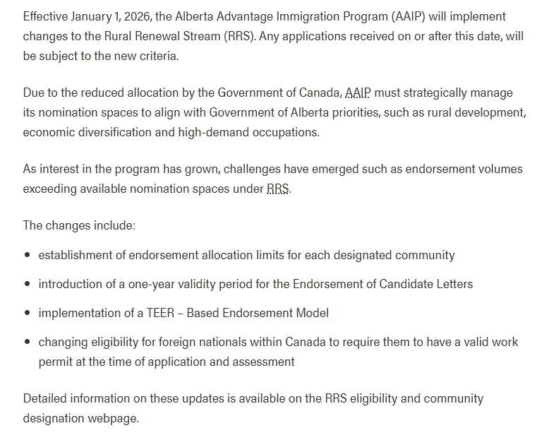 就在加拿大当地时间11月18日,阿省移民局官网就RRS通道同步了最新一轮的更新,主要涉及到RRS通道的标准。