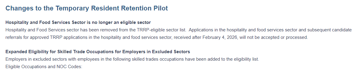 根据曼省移民局官网最新公告,自2026年2月4日起,曼省将不再接受餐饮服务业等相关低薪岗位从业者的移民申请。这意味着,在曼省从事餐厅服务员、清洁人员、后厨等职位的申请人,将基本失去通过该类别申请省提名移民的机会。